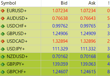 Les devises de base du compte sont AUD, CHF, EUR, GBP, JPY, USD, ZAR et NZD.